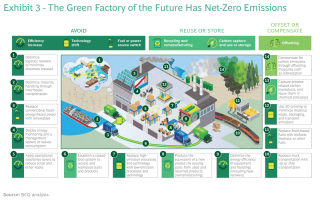 Recognizing the need for action, leading companies are implementing initiatives to decarbonize their operations. Moreover, some companies have gone further and started to require their business partners in the supply chain to demonstrate a commitment to decarbonization as well. The result is a convergence of environmental and economic imperatives that all industrial companies must be prepared to address. The solution is a concept that we call “the green factory of the future,” in which the integrated application of decarbonization measures reduces net emissions to zero.